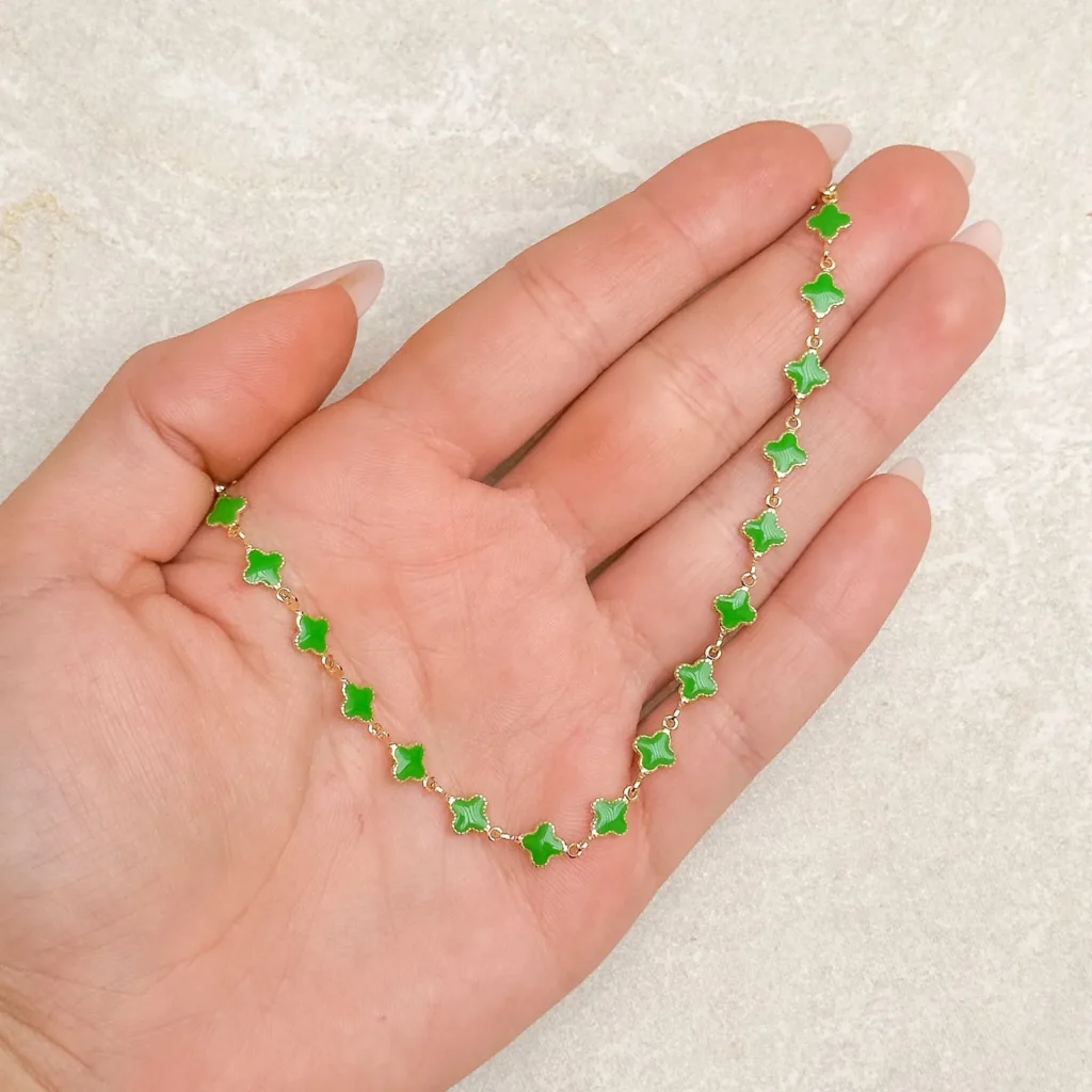 PULSEIRA MINI TREVOS ESMALTADO RESINA VERDE