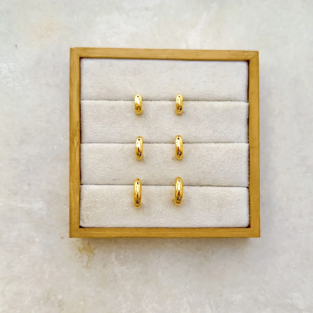 TRIO DE BRINCOS ARGOLINHAS QUADRADAS COM STRASS