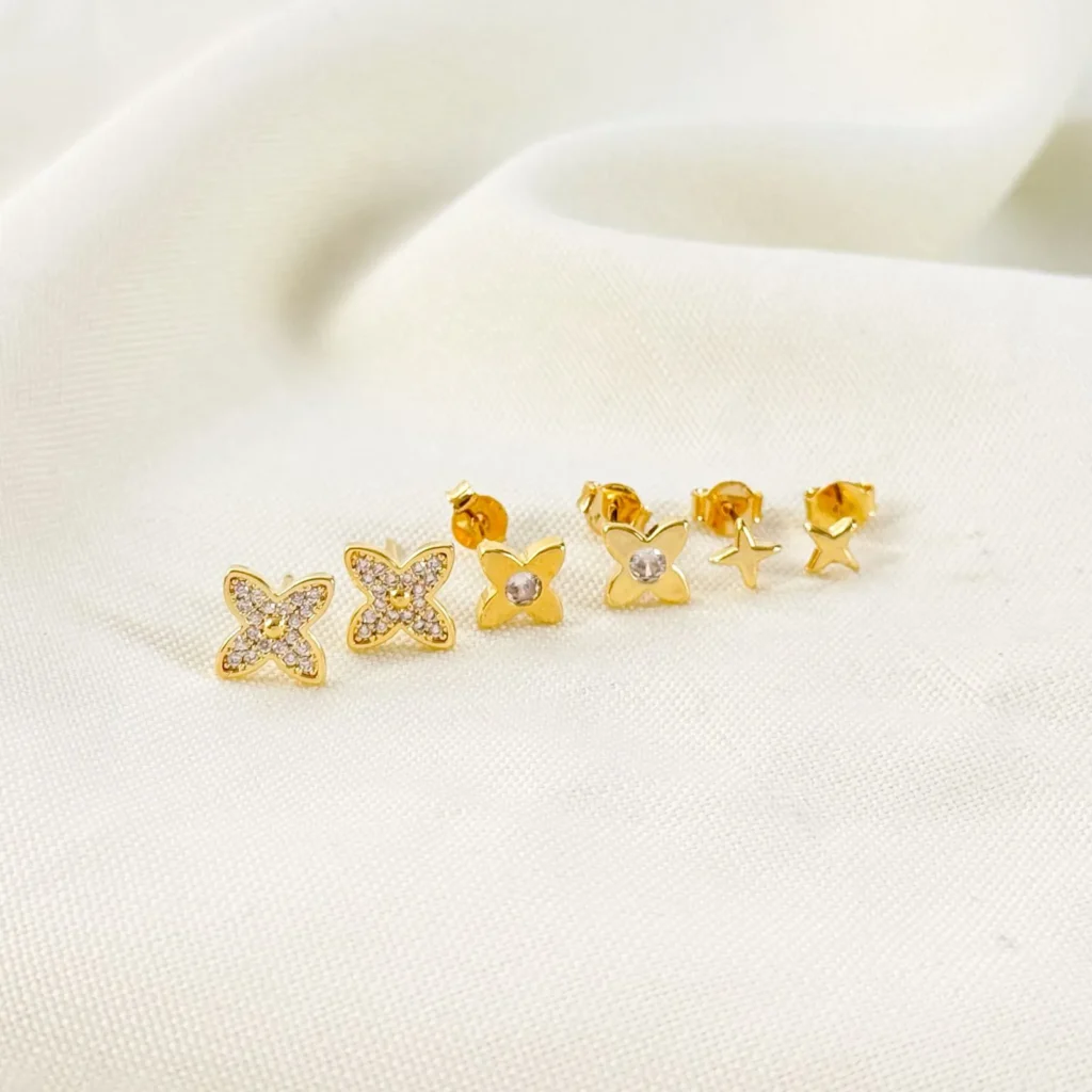 TRIO DE BRINCOS TREVO INSP. LV CRAVEJADO MICROZIRCÔNIA