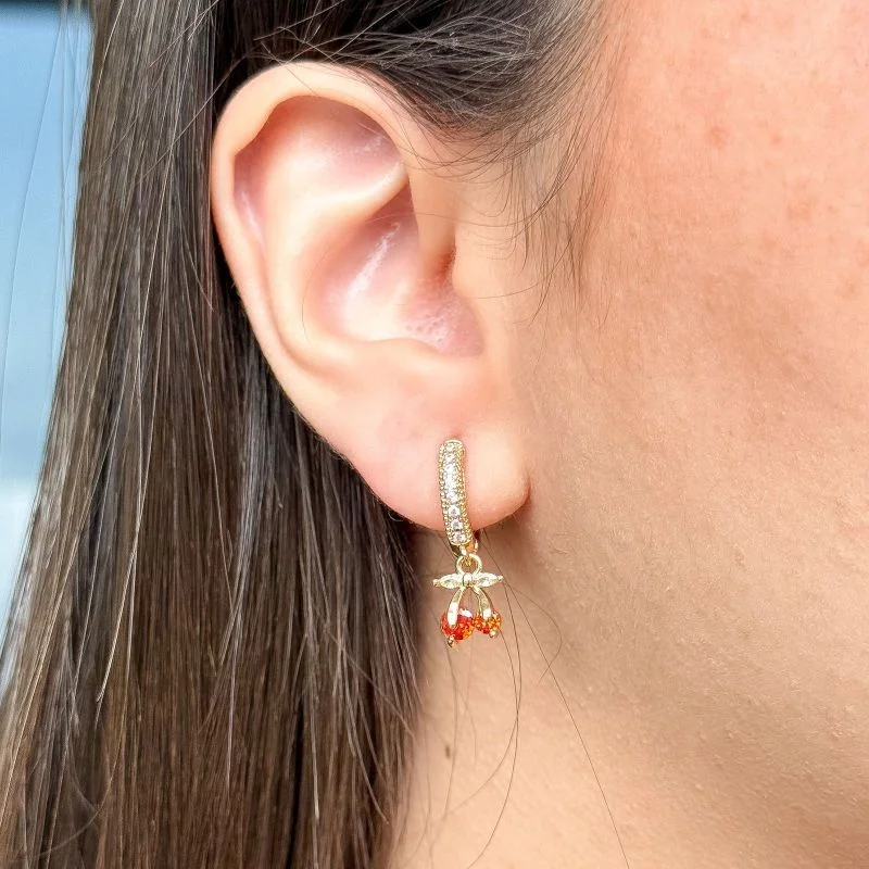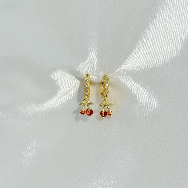 Brinco Argola Cherry Cereja Cravejada Zircônia