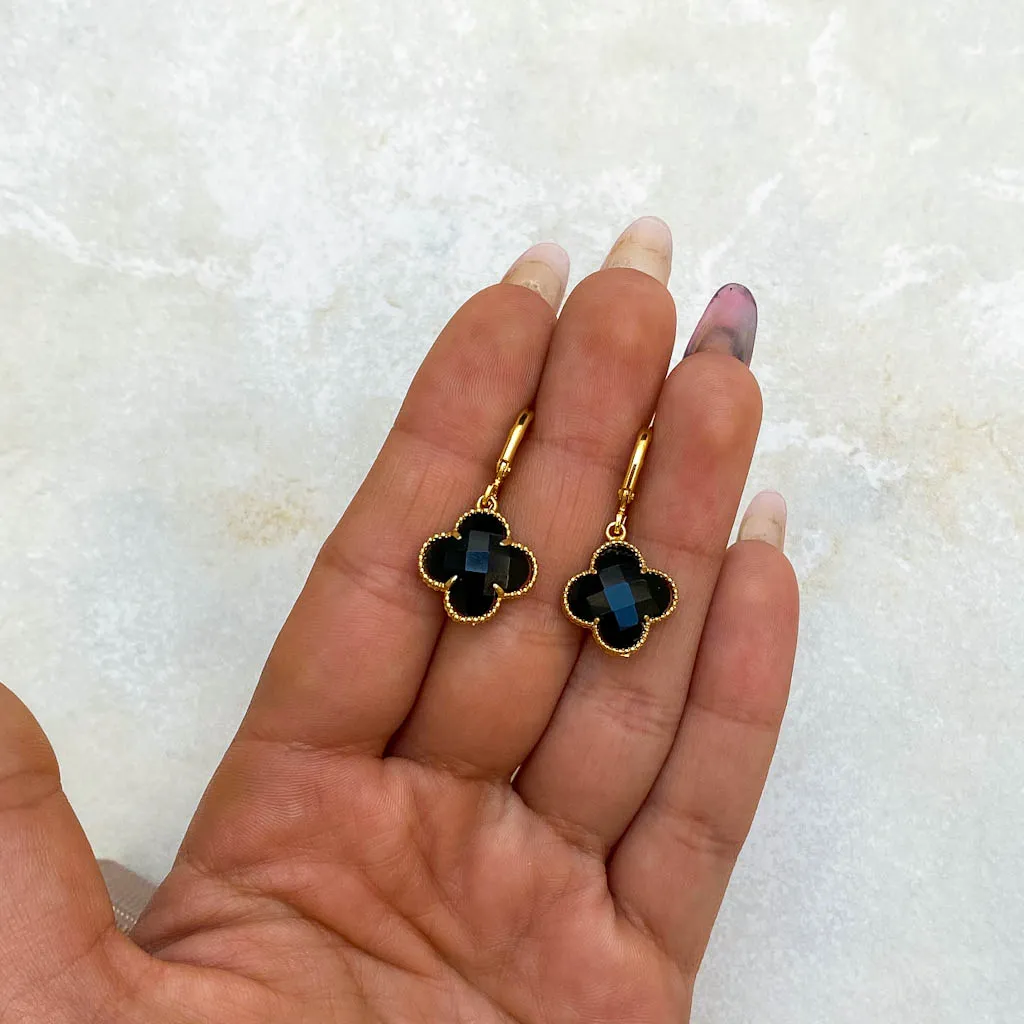 Brinco Trevo insp. VanCleef pedra Onix.
