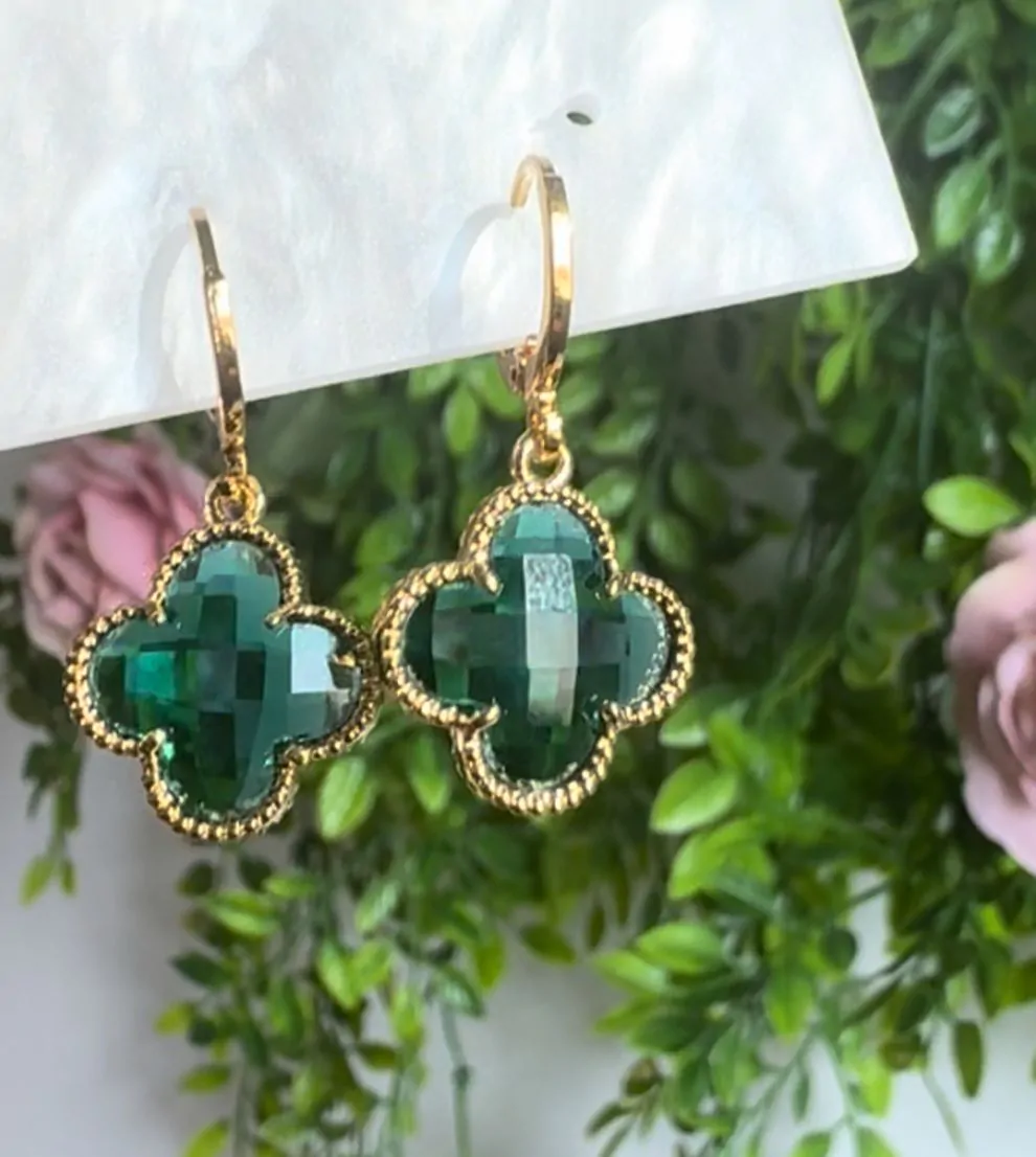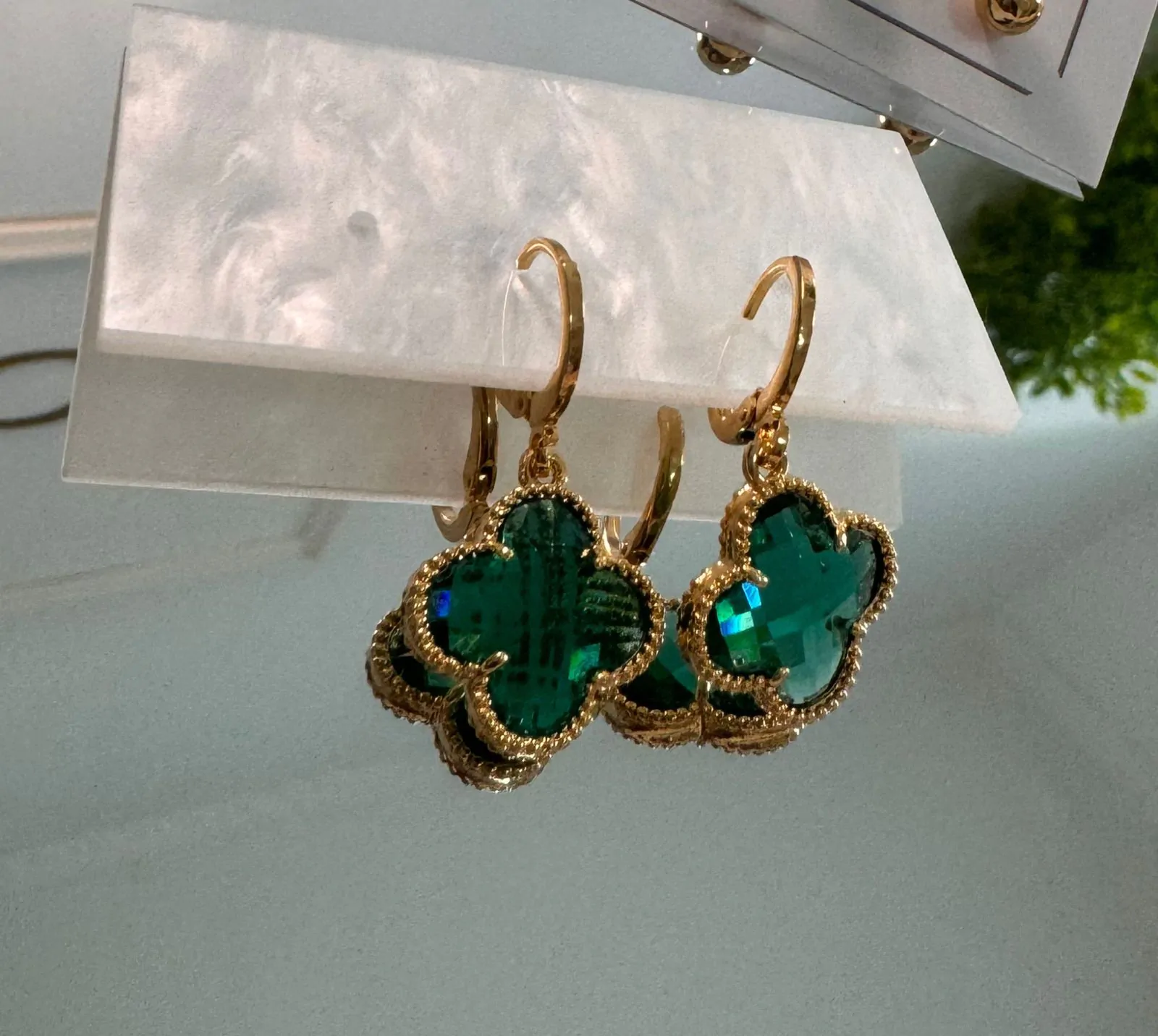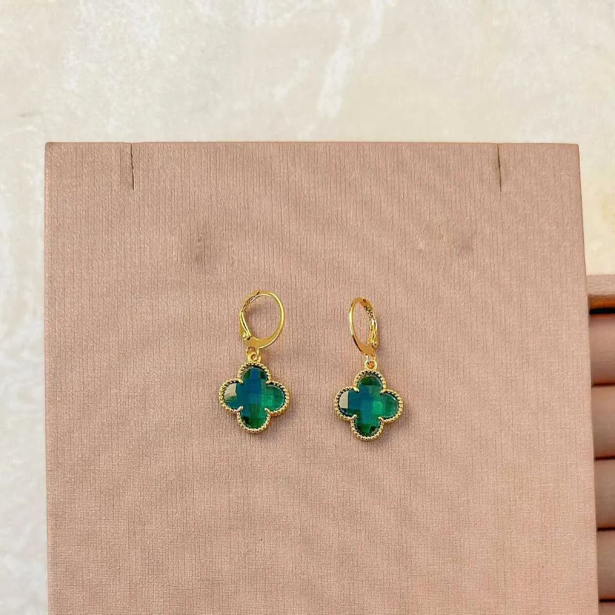 Brinco Trevo Insp. Grife VanCleef, pedra verde esmeralda lapidada.