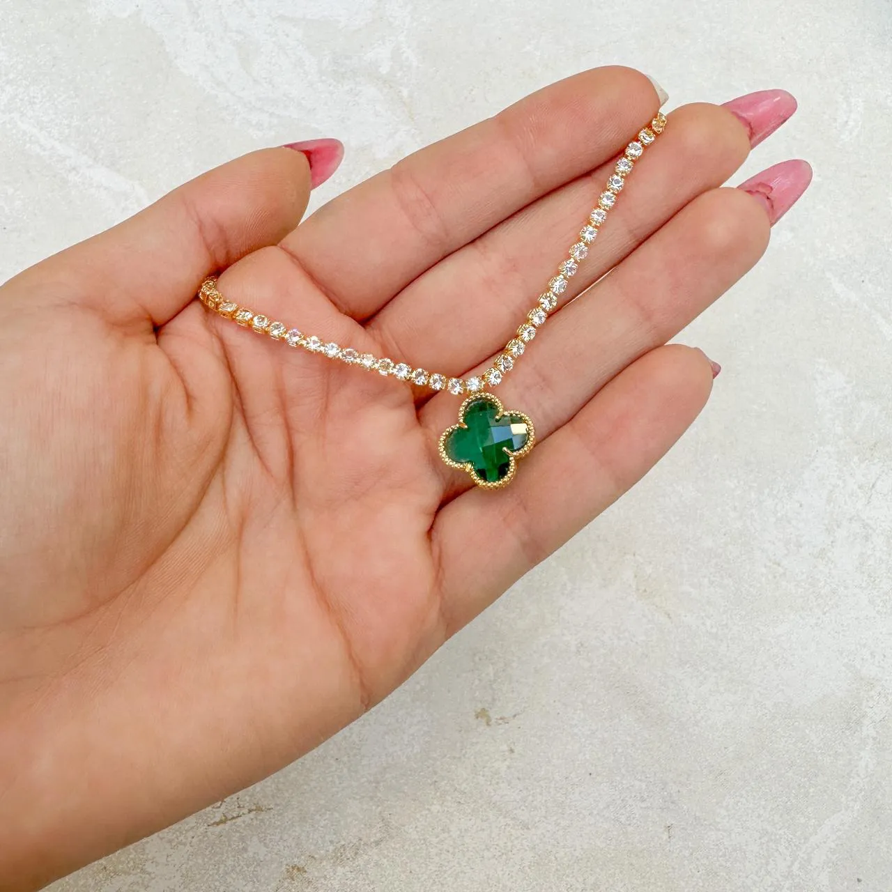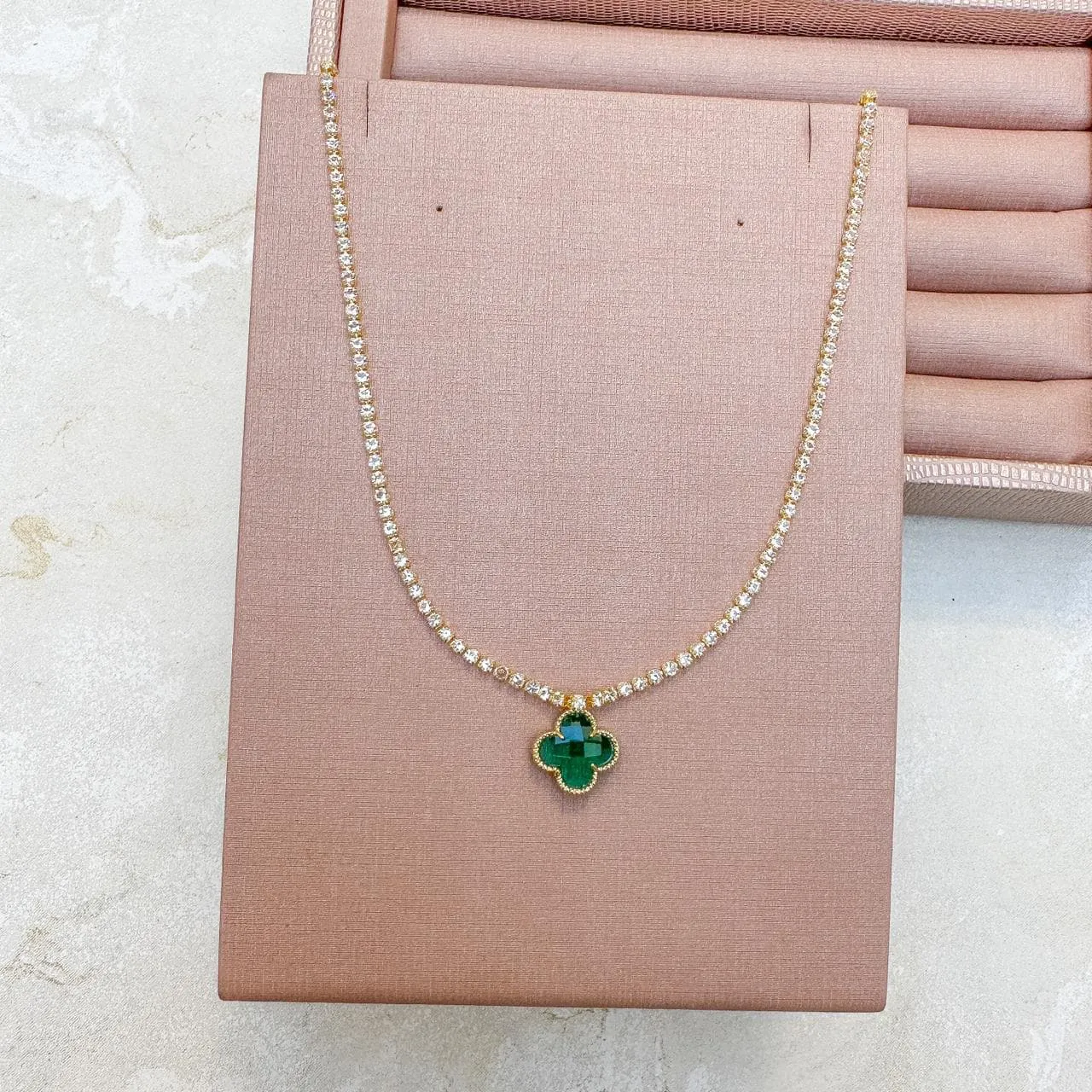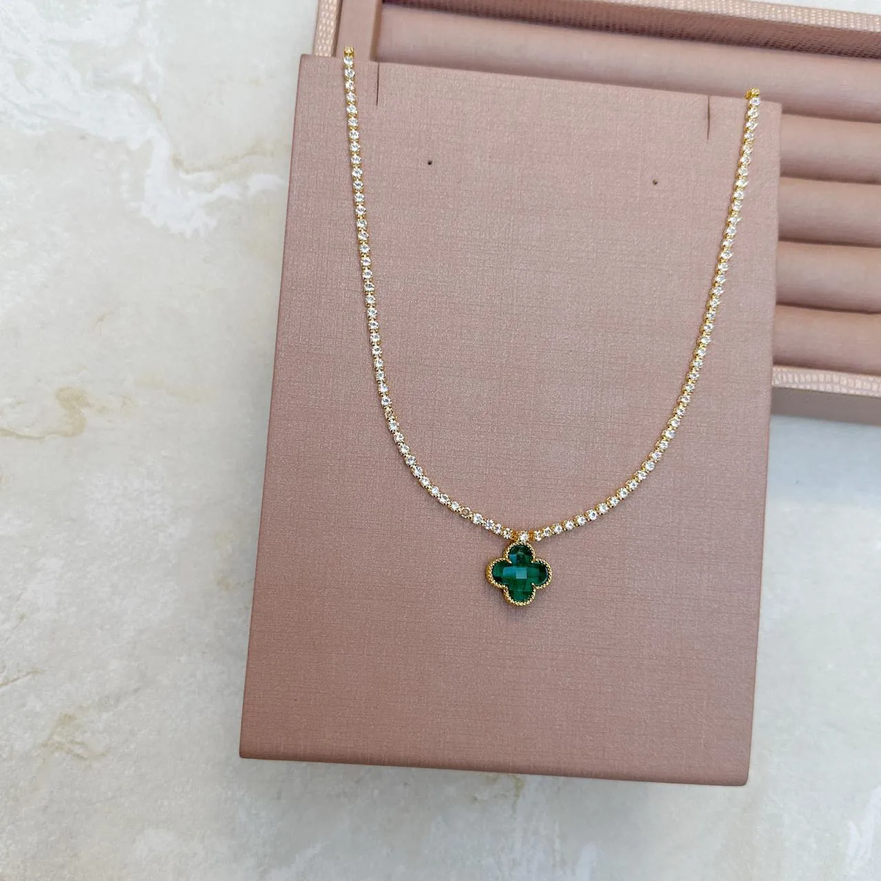 Colar chocker Trevo insp. VanCleef, acabamento cravejado com micro cristais naturais.