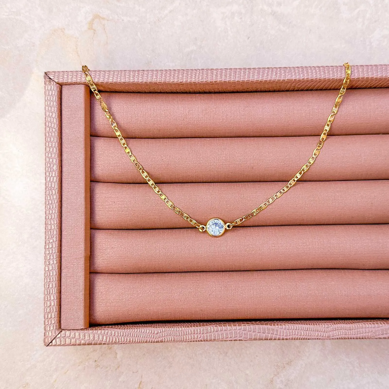 CHOKER PONTO DE LUZ EM ZIRCÔNIA CORRENTE PIASTRINE DIAMANTADA