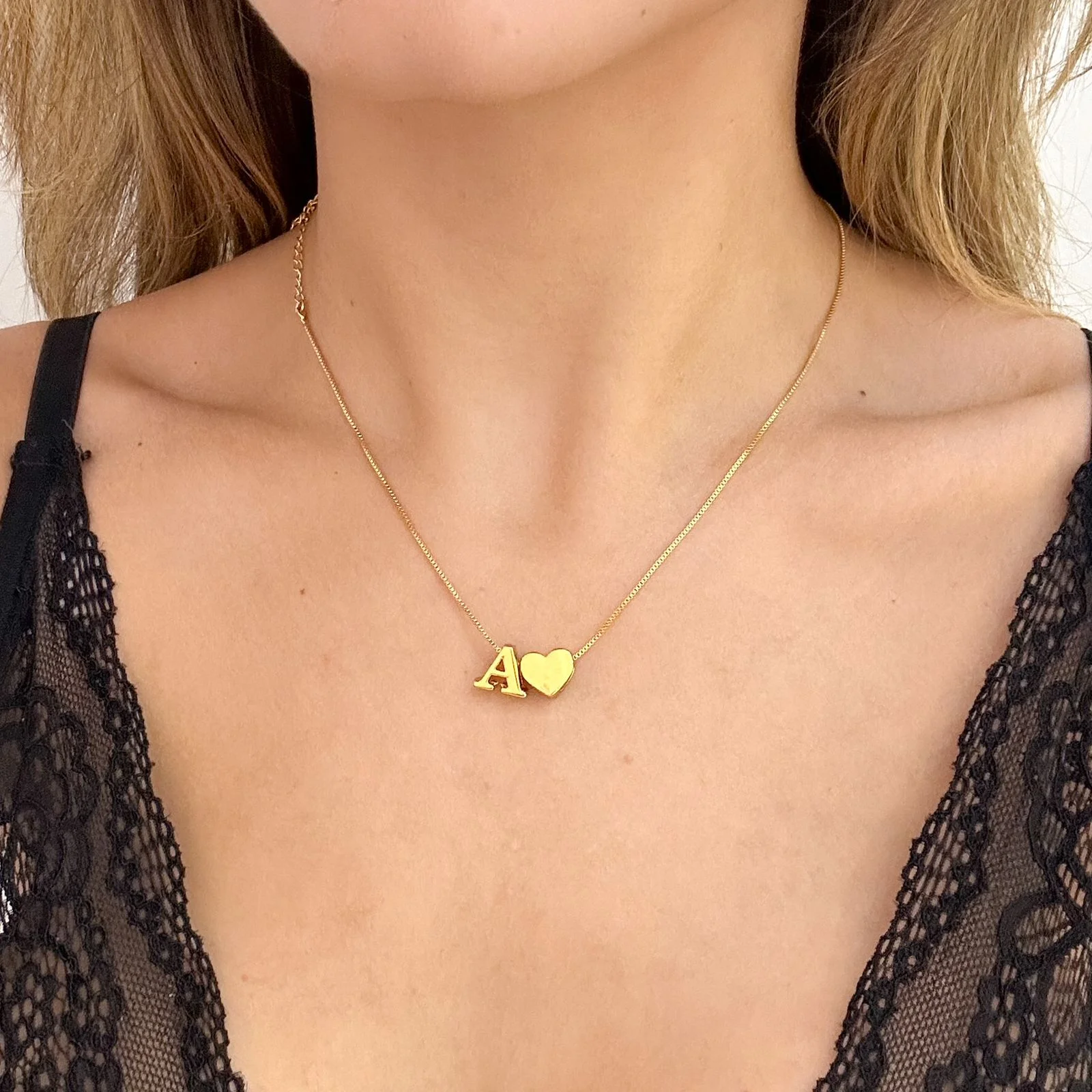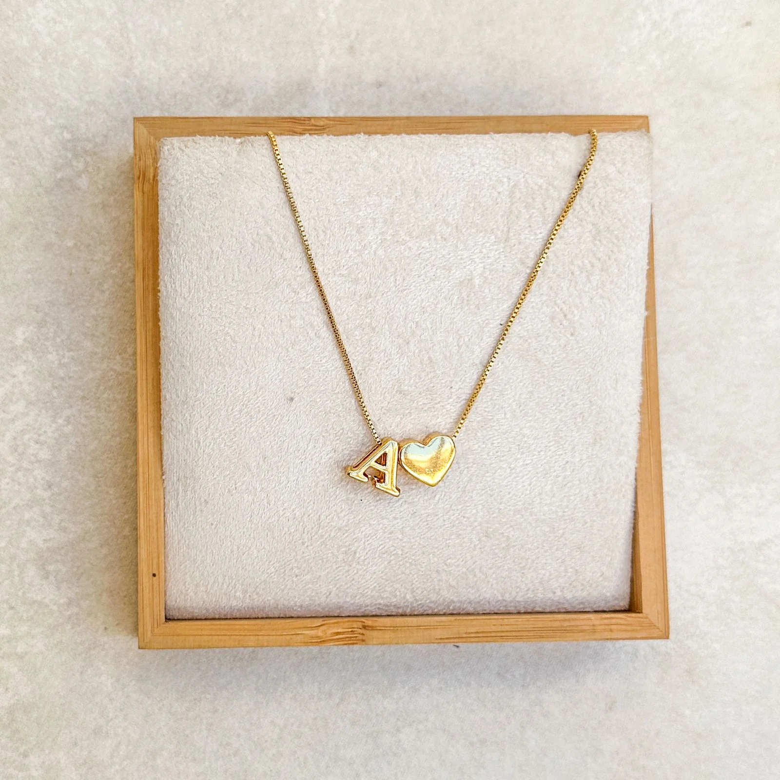 COLAR LETRA INICIAL E CORAÇÃO LISO EM VENEZIANA