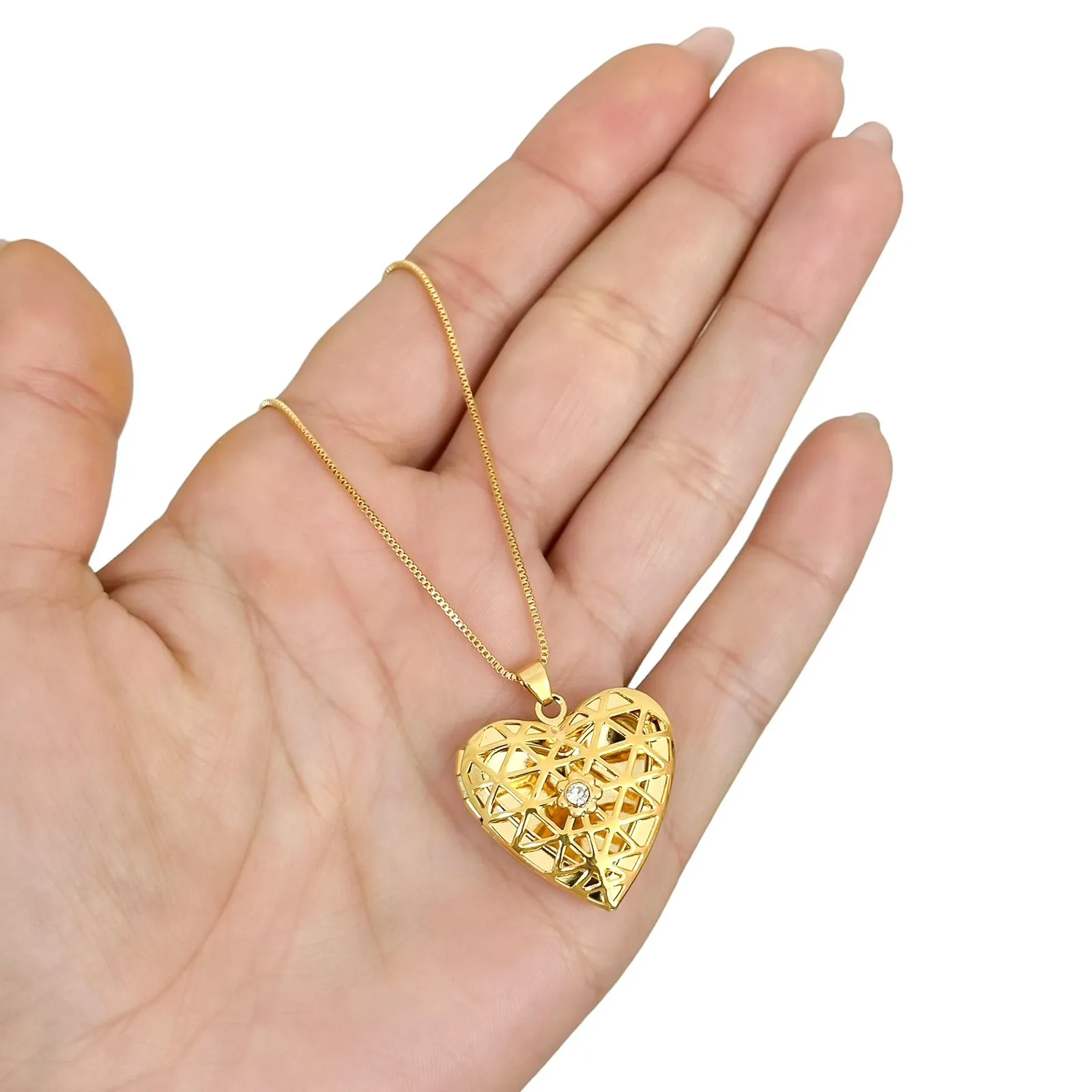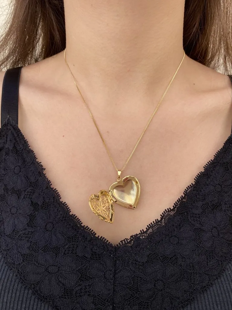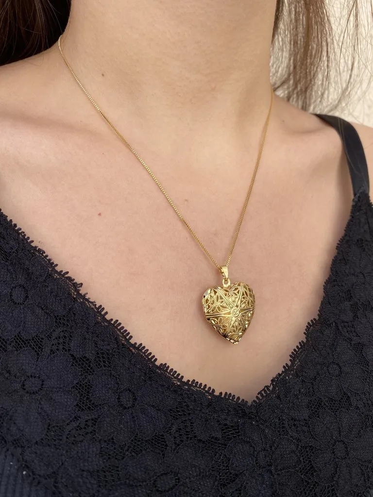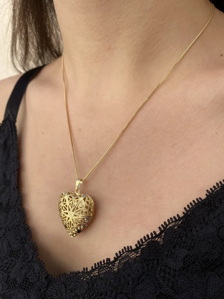COLAR RELICÁRIO DETALHADO LOVE MEMORIES BANHADO OURO 18k