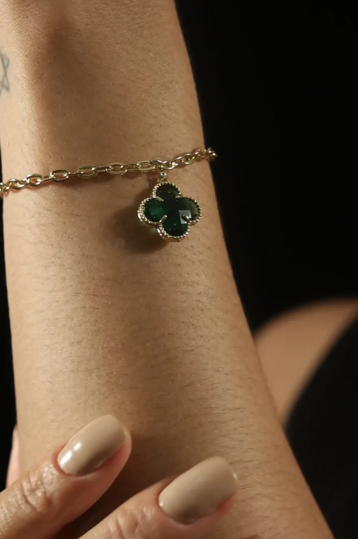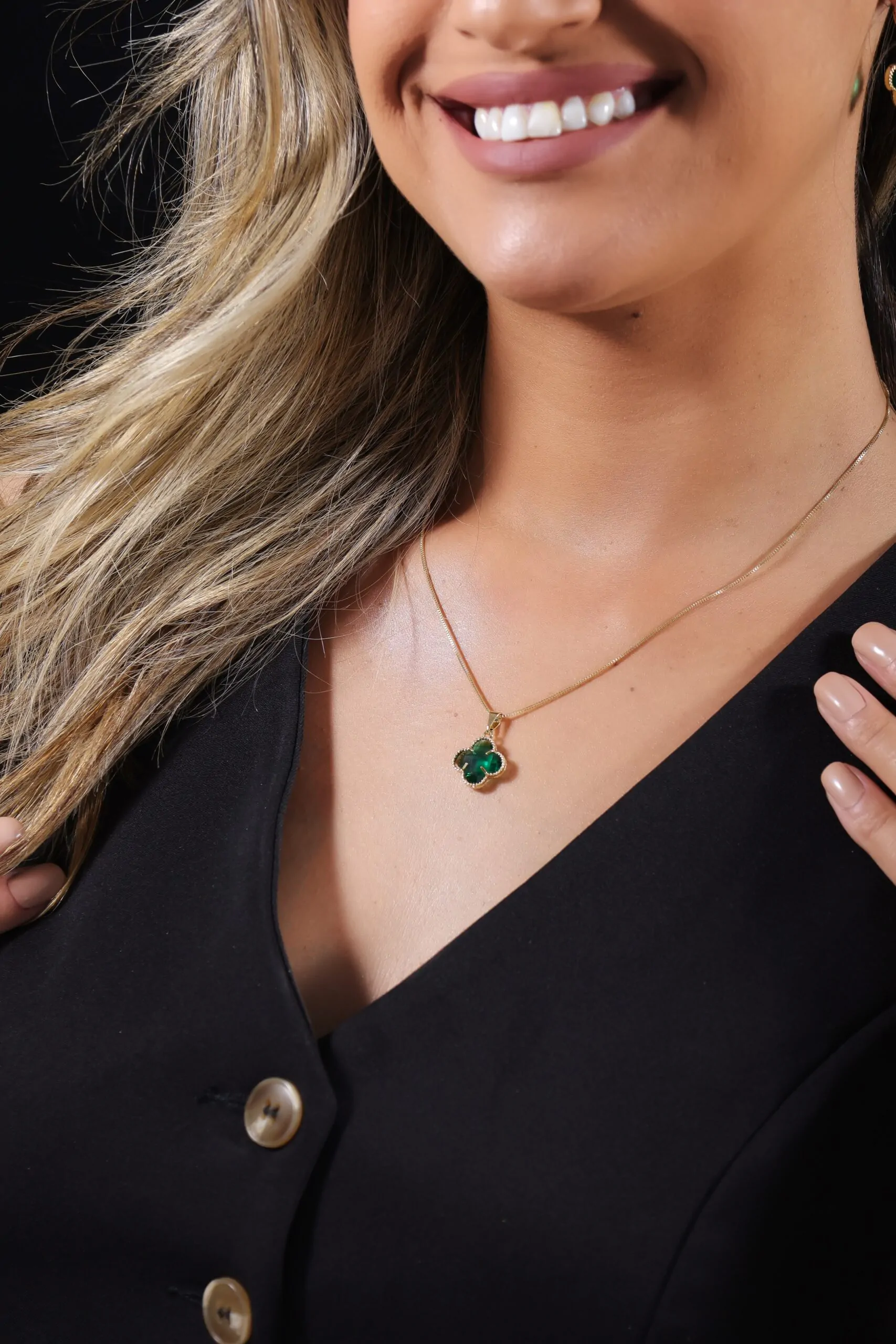 CONJUNTO 3 pcs TREVO INSP. VANCLEEF PEDRA VERDE ESMERALDA LAPIDADA.