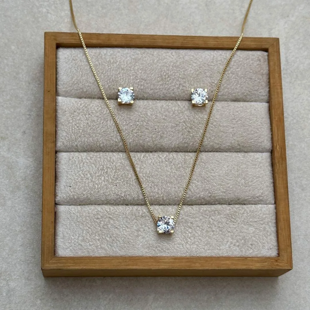 CONJUNTO PONTO DE LUZ ZIRCÔNIA 6mm CRAVAÇÃO DE JÓIA