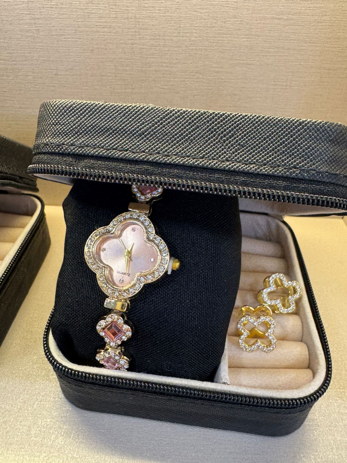 Relógio Trevo Maria de Cla com pedras de zircônias lapidadas, perfeito pra quem gosta de brilhar com sutileza e sofisticação.